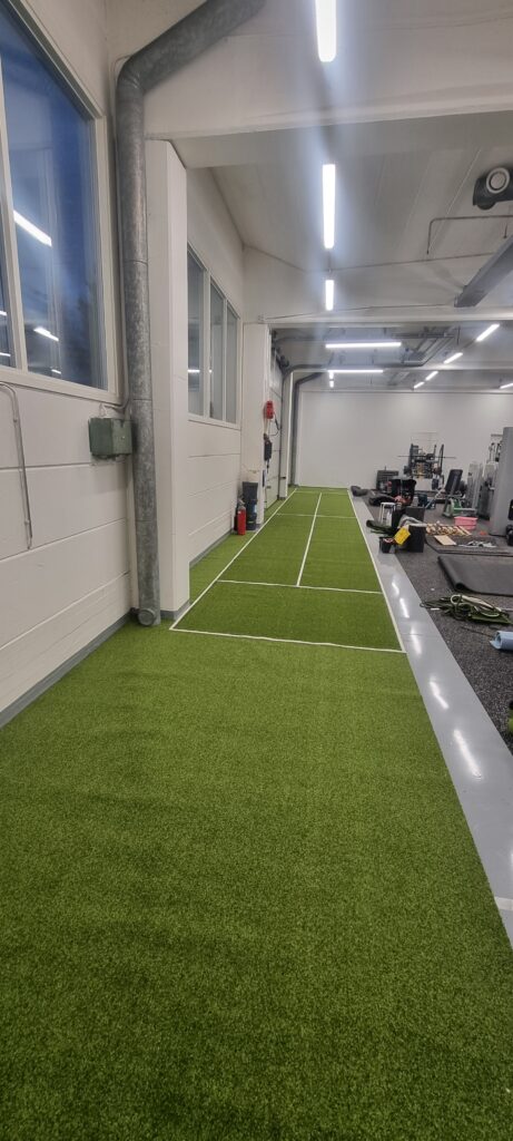 Meidän Master tekonurmella on toteutettu kaikki tähän saakka asennetut Hyrox alustat; poikkiviivat ovat asiakkaiden toiveiden mukaisesti jätetty minimiin.